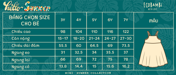 ĐẦM BÉ GÁI 2 DÂY ECOBAMBI COTTON DỆT HỌA TIẾT NỔI