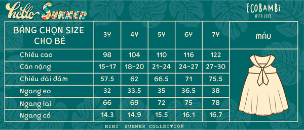 Form dáng đầm thủy thủ đáng yêu chưa bao giờ hạ nhiệt mỗi khi vào mùa hè, tôn lên vẻ đáng yêu, tinh nghịch, trong sáng của các bé gái. Đầm được may 2 lớp thấm hút mồ hôi tạo sự thoáng mát tối đa cho bé.